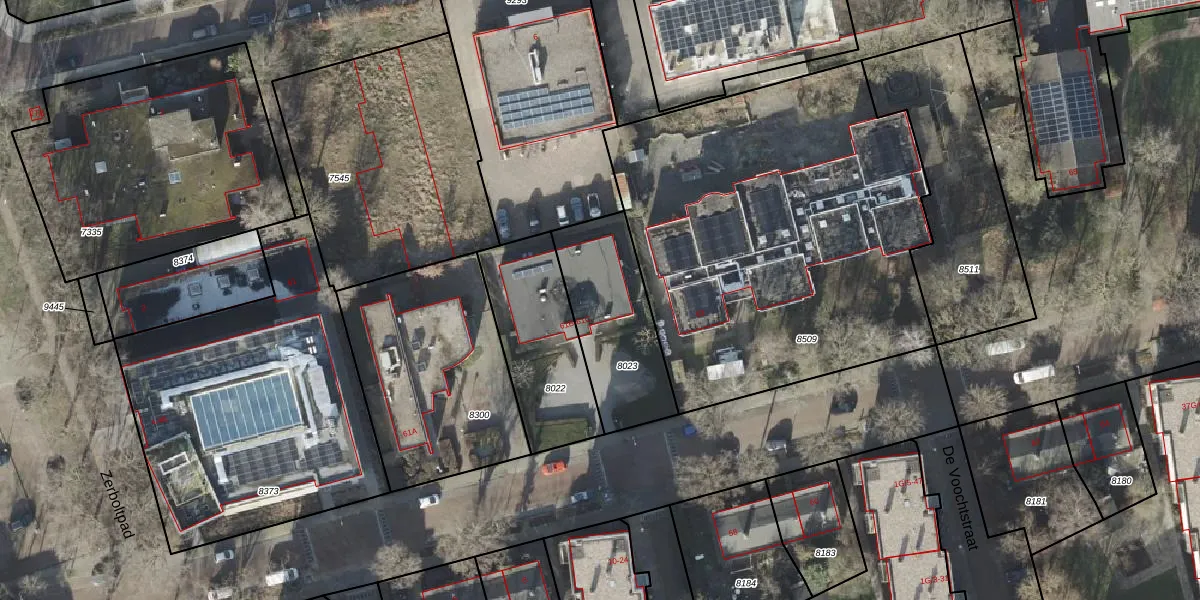 Het perceel waarop Zerboltstraat 61-C staat heeft een oppervlakte van 447 m². Dit is een groot perceel. De perceeloppervlakte wordt geregistreerd door het Kadaster. Gedetailleerde informatie over de maten van dit perceel kunt u vinden in het rapport Kadastrale kaart met maatvoering van Zerboltstraat 61-C.