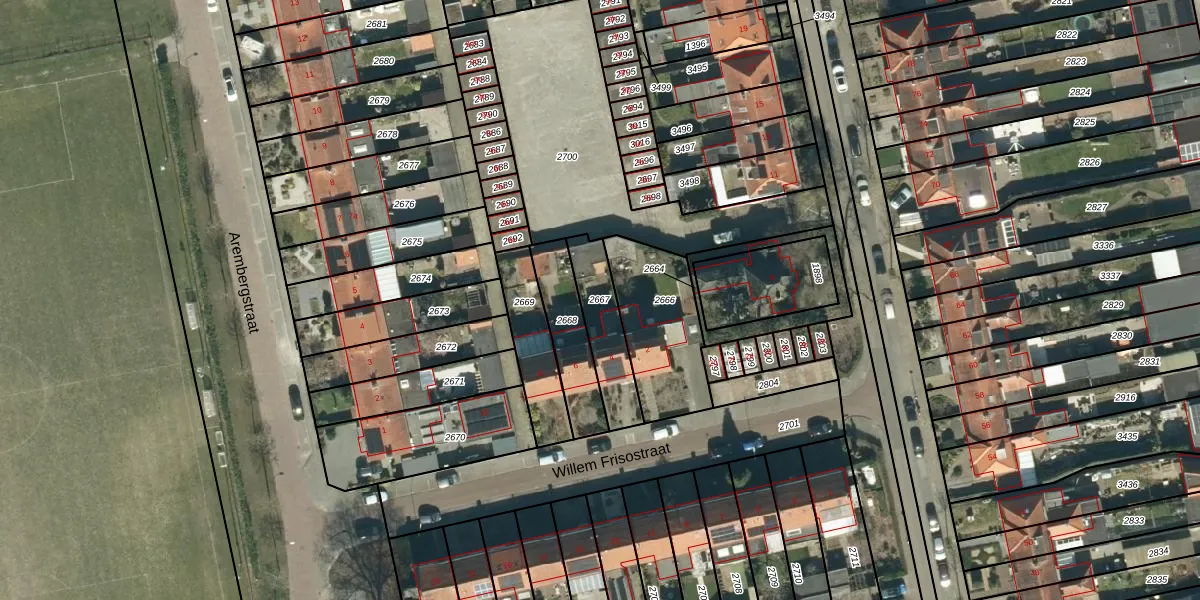 Gebruik de zoekbalk of klik op een perceel om informatie over het perceel te bekijken.