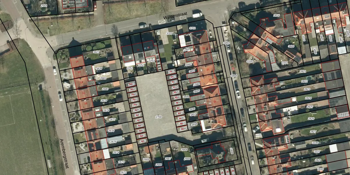 Gebruik de zoekbalk of klik op een perceel om informatie over het perceel te bekijken.