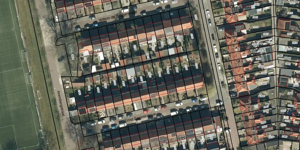 Gebruik de zoekbalk of klik op een perceel om informatie over het perceel te bekijken.