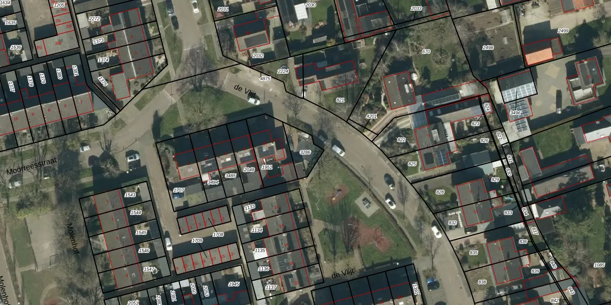 Gebruik de zoekbalk of klik op een perceel om informatie over het perceel te bekijken.