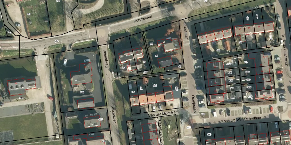 Gebruik de zoekbalk of klik op een perceel om informatie over het perceel te bekijken.