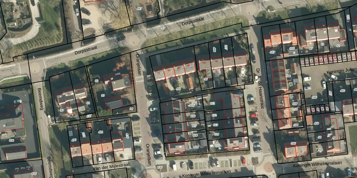 Gebruik de zoekbalk of klik op een perceel om informatie over het perceel te bekijken.