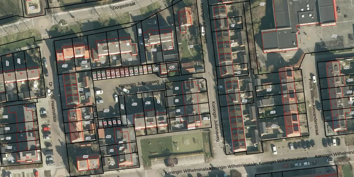 Gebruik de zoekbalk of klik op een perceel om informatie over het perceel te bekijken.