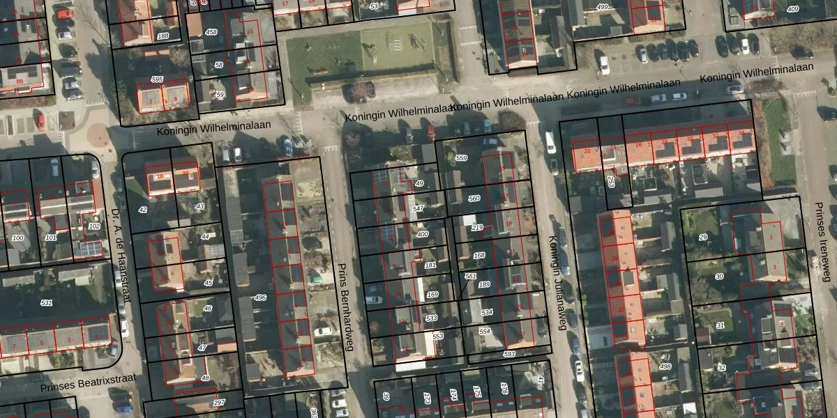 Gebruik de zoekbalk of klik op een perceel om informatie over het perceel te bekijken.