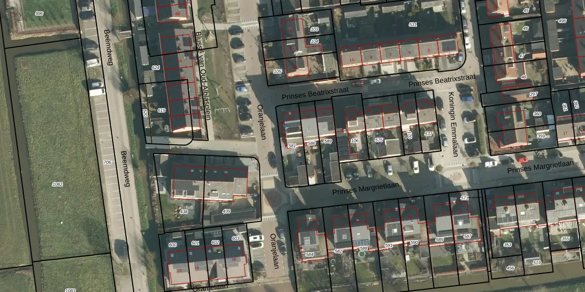 Gebruik de zoekbalk of klik op een perceel om informatie over het perceel te bekijken.