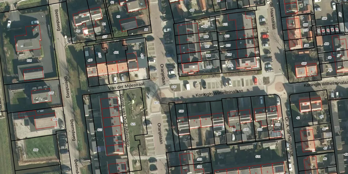 Gebruik de zoekbalk of klik op een perceel om informatie over het perceel te bekijken.