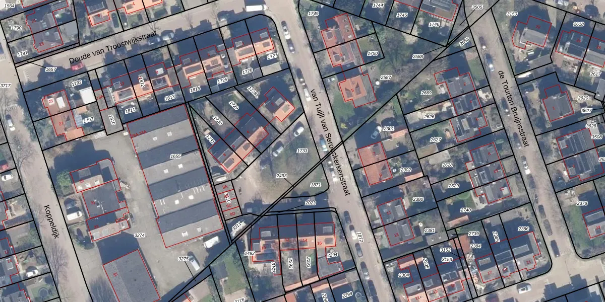 Gebruik de zoekbalk of klik op een perceel om informatie over het perceel te bekijken.