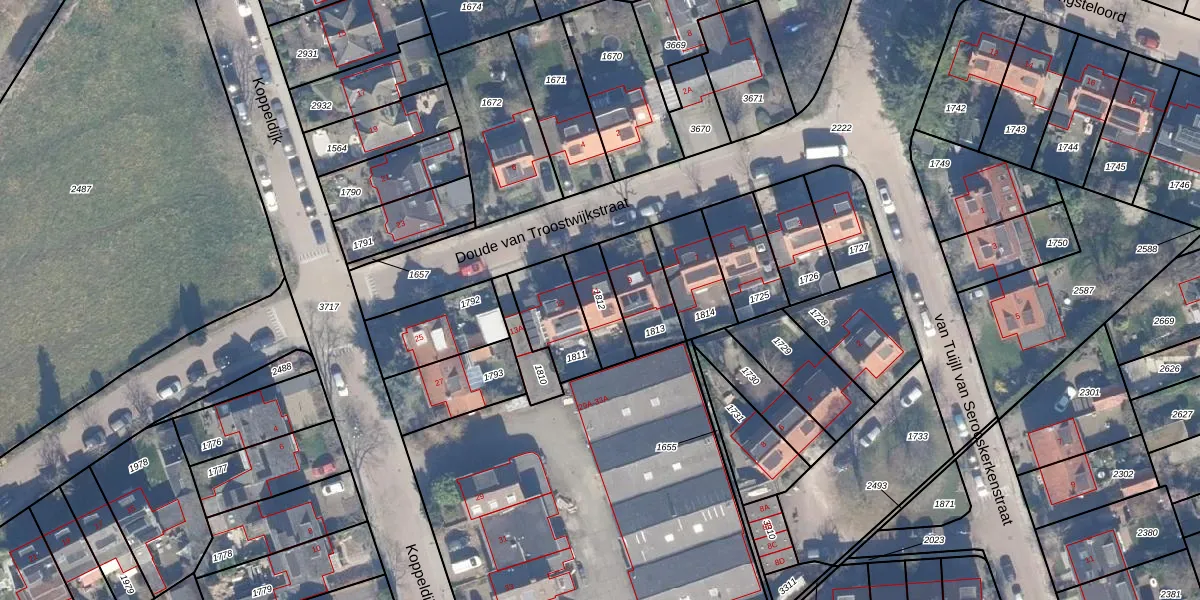 Gebruik de zoekbalk of klik op een perceel om informatie over het perceel te bekijken.
