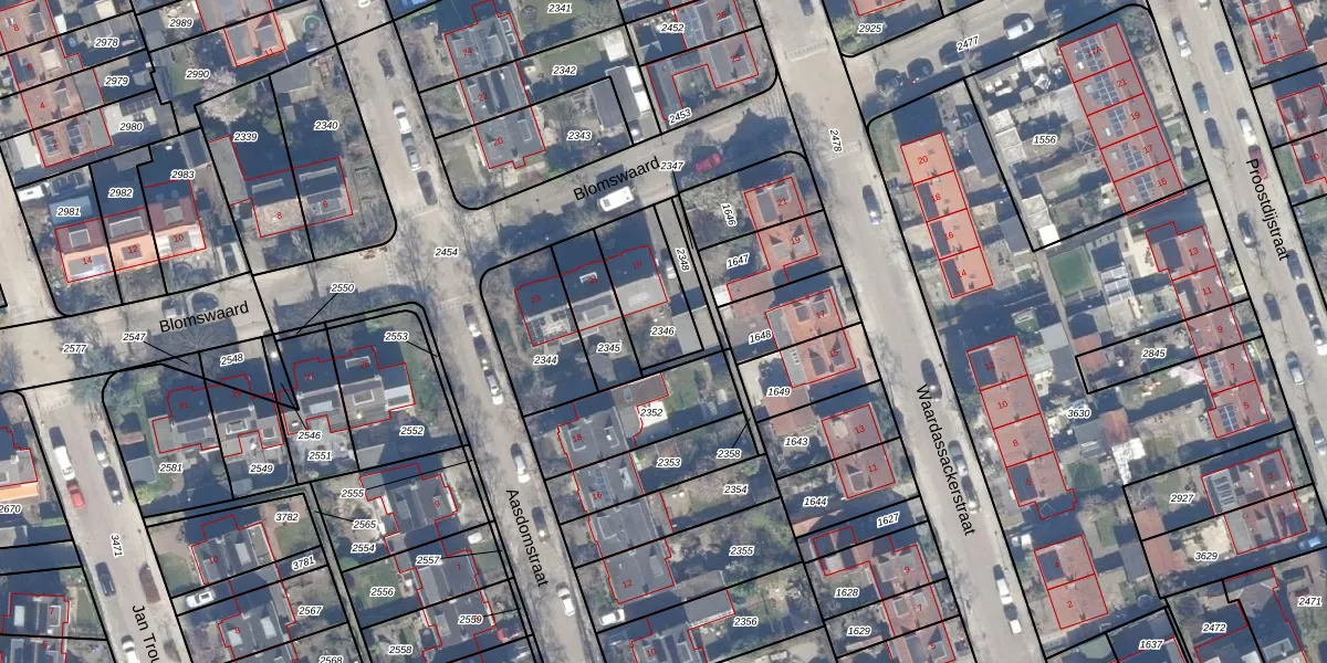 Gebruik de zoekbalk of klik op een perceel om informatie over het perceel te bekijken.