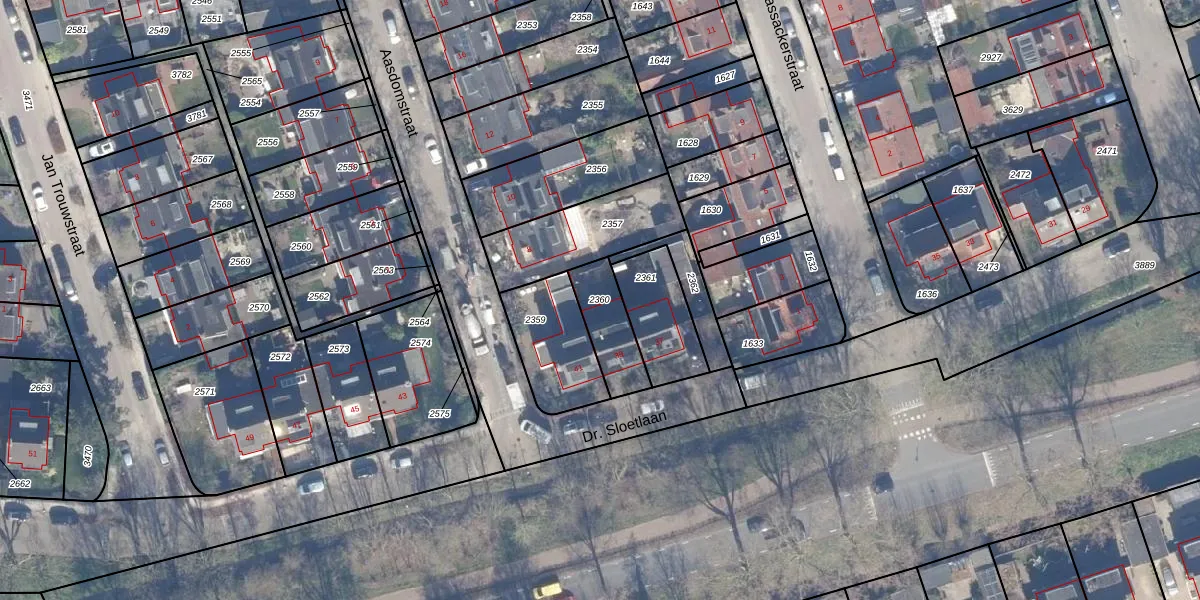 Gebruik de zoekbalk of klik op een perceel om informatie over het perceel te bekijken.