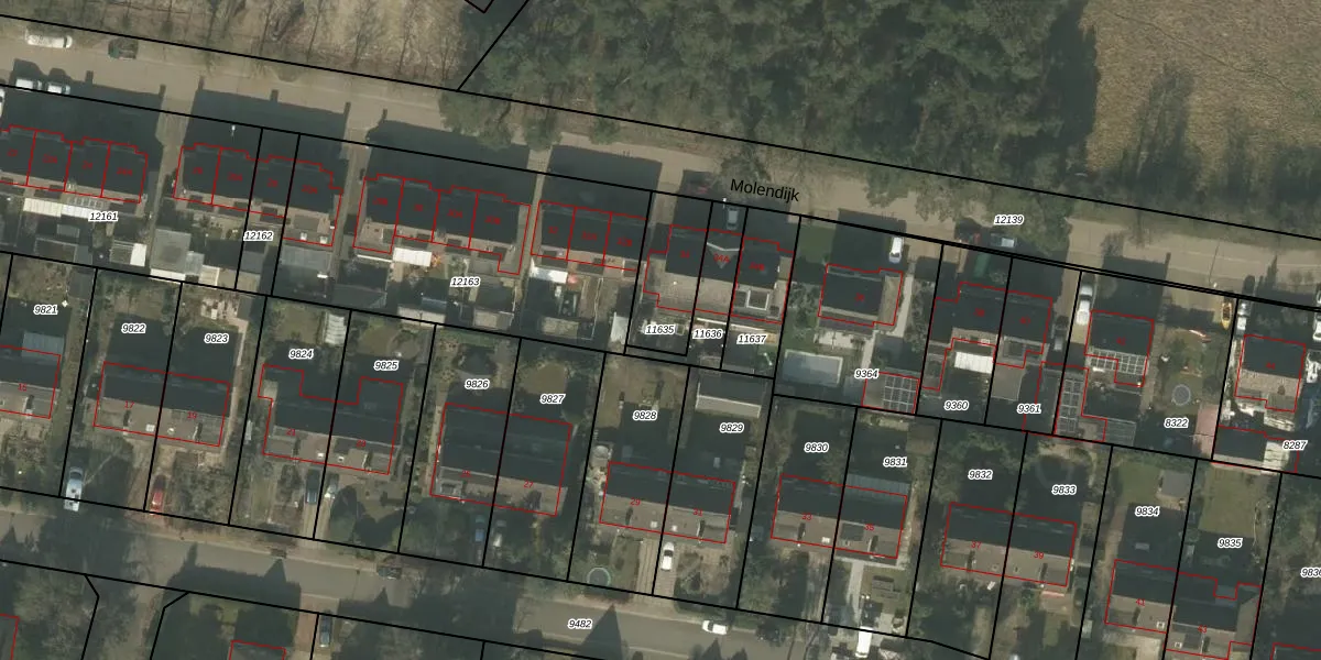 Gebruik de zoekbalk of klik op een perceel om informatie over het perceel te bekijken.