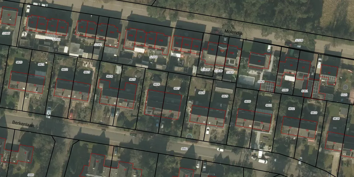 Gebruik de zoekbalk of klik op een perceel om informatie over het perceel te bekijken.