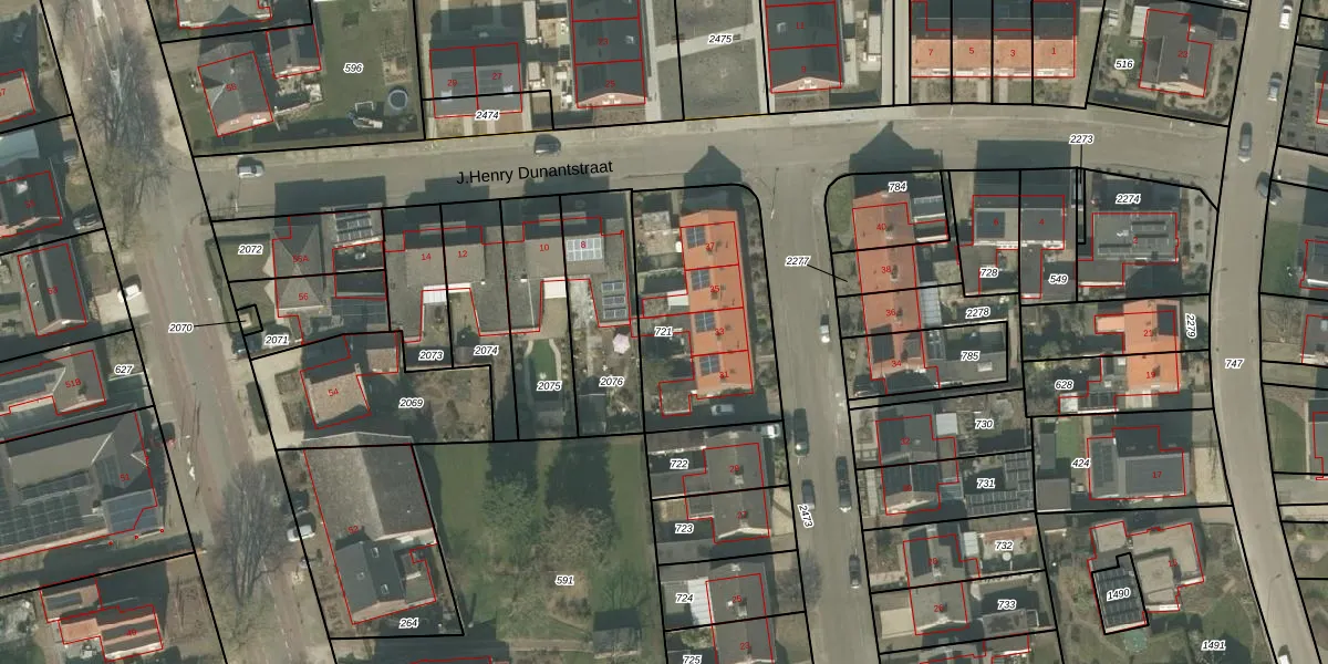 Gebruik de zoekbalk of klik op een perceel om informatie over het perceel te bekijken.