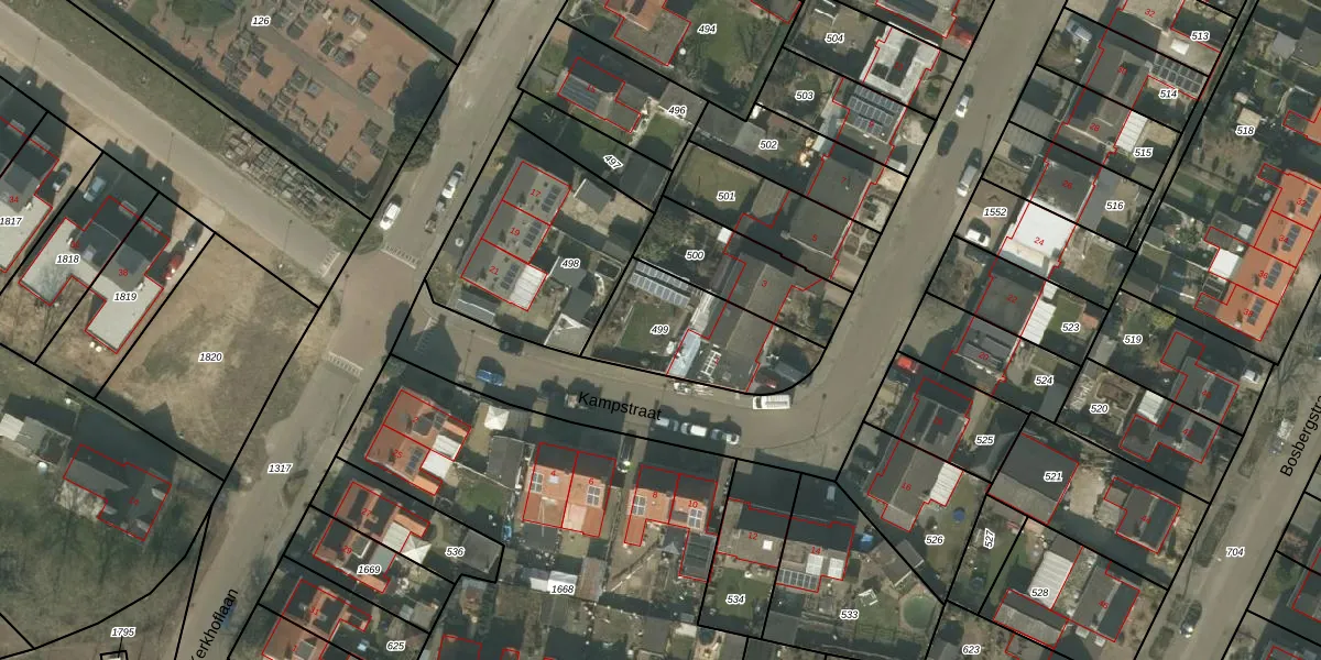 Gebruik de zoekbalk of klik op een perceel om informatie over het perceel te bekijken.