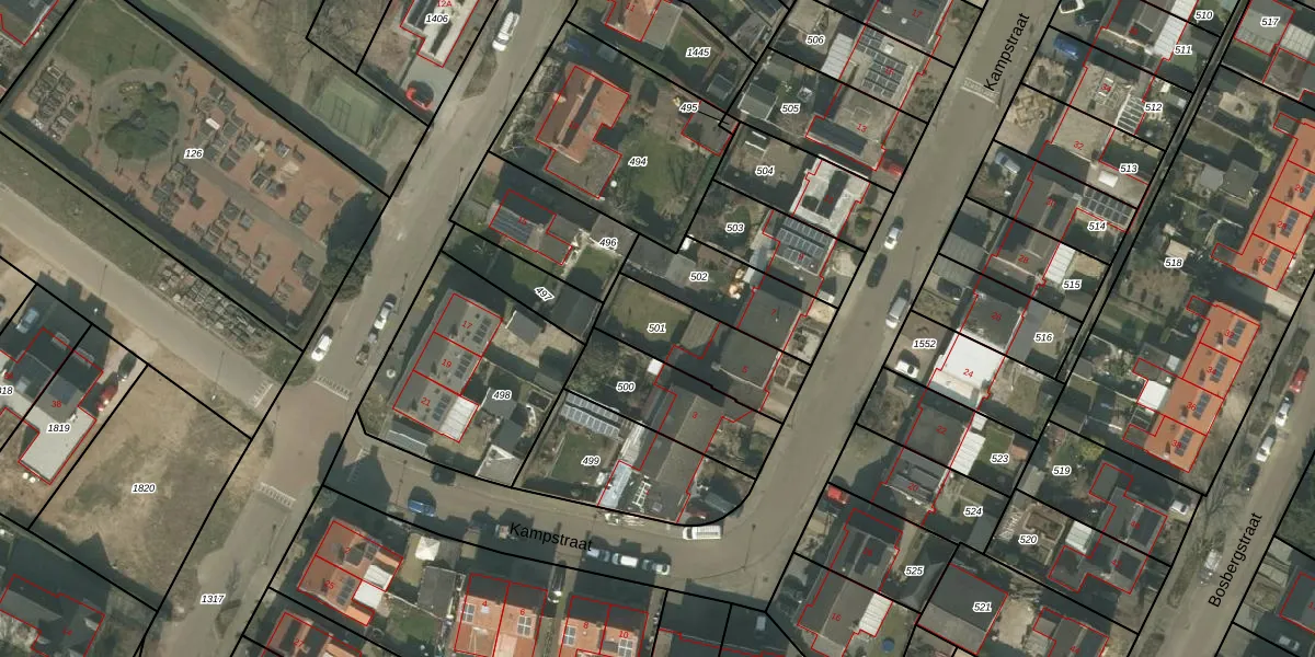 Gebruik de zoekbalk of klik op een perceel om informatie over het perceel te bekijken.