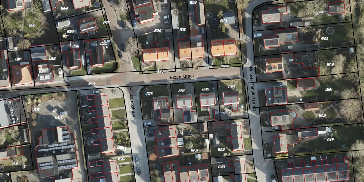 Gebruik de zoekbalk of klik op een perceel om informatie over het perceel te bekijken.