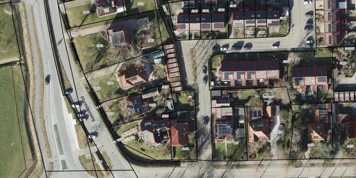 Gebruik de zoekbalk of klik op een perceel om informatie over het perceel te bekijken.