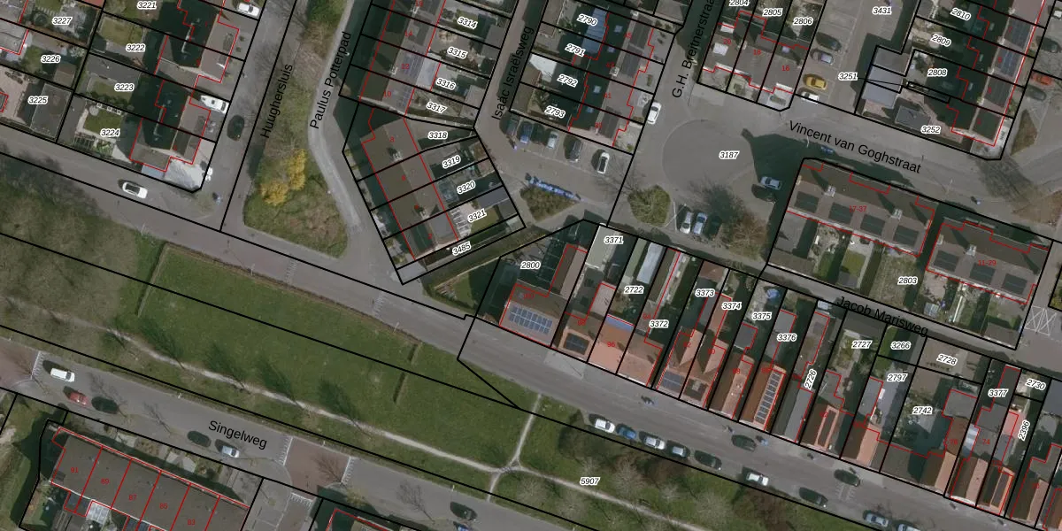 Gebruik de zoekbalk of klik op een perceel om informatie over het perceel te bekijken.