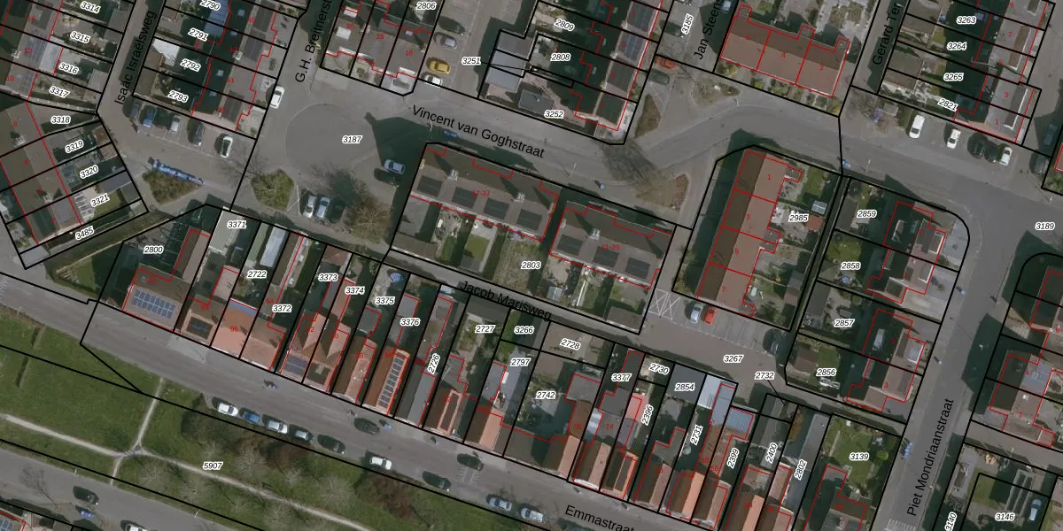 Gebruik de zoekbalk of klik op een perceel om informatie over het perceel te bekijken.