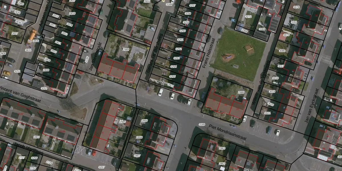 Gebruik de zoekbalk of klik op een perceel om informatie over het perceel te bekijken.