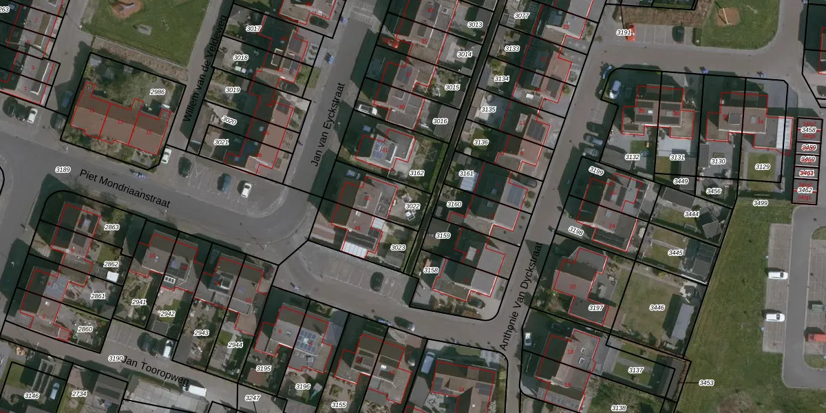 Gebruik de zoekbalk of klik op een perceel om informatie over het perceel te bekijken.