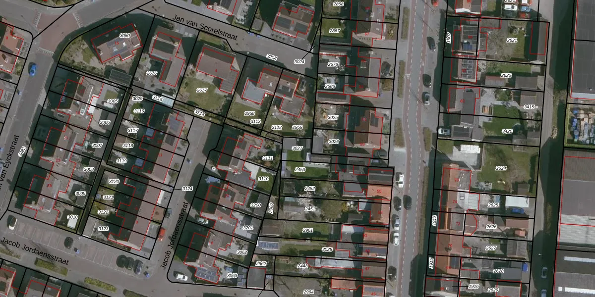 Gebruik de zoekbalk of klik op een perceel om informatie over het perceel te bekijken.