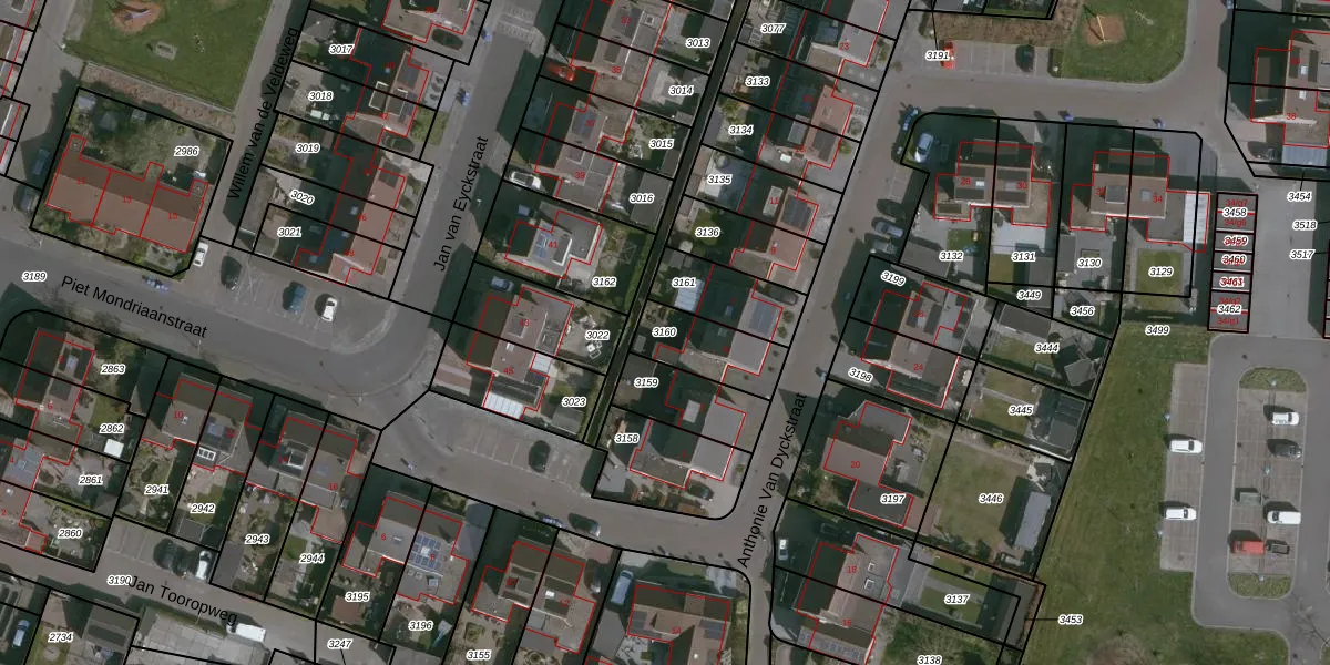 Gebruik de zoekbalk of klik op een perceel om informatie over het perceel te bekijken.