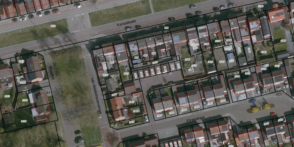 Gebruik de zoekbalk of klik op een perceel om informatie over het perceel te bekijken.