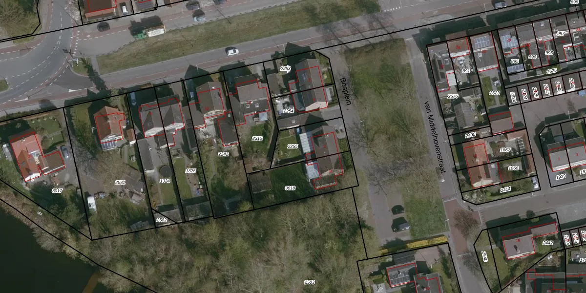Gebruik de zoekbalk of klik op een perceel om informatie over het perceel te bekijken.