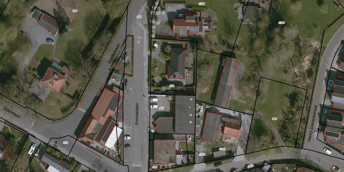 Gebruik de zoekbalk of klik op een perceel om informatie over het perceel te bekijken.