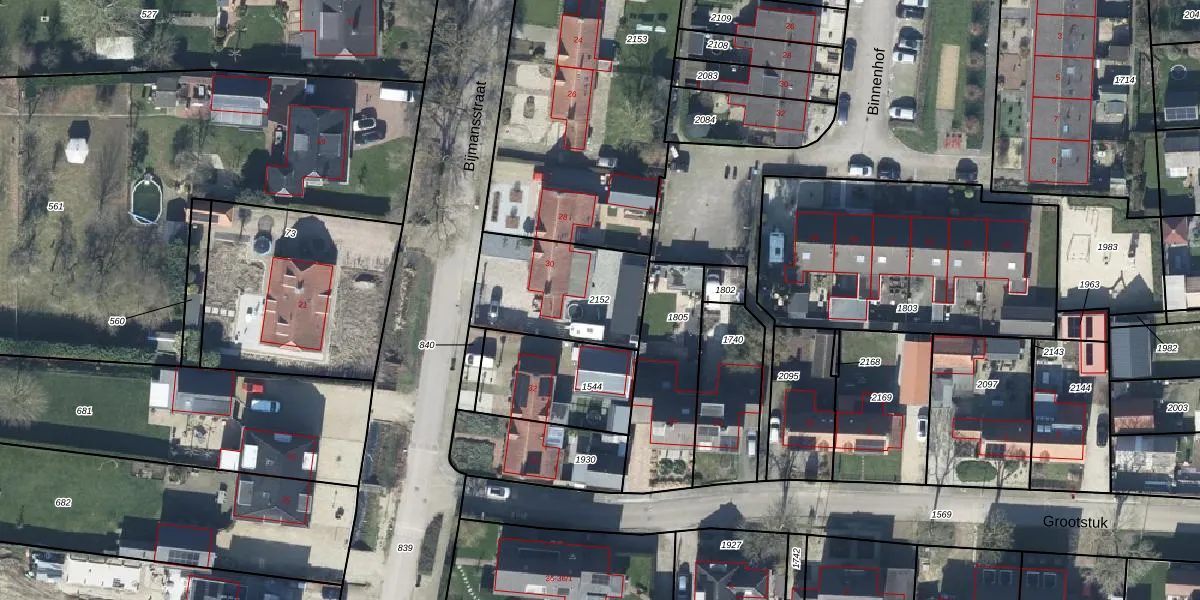 Gebruik de zoekbalk of klik op een perceel om informatie over het perceel te bekijken.