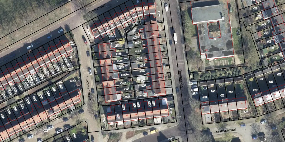 Gebruik de zoekbalk of klik op een perceel om informatie over het perceel te bekijken.