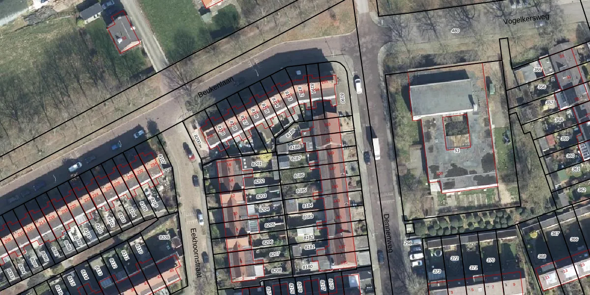 Gebruik de zoekbalk of klik op een perceel om informatie over het perceel te bekijken.