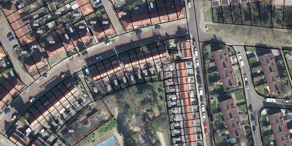 Gebruik de zoekbalk of klik op een perceel om informatie over het perceel te bekijken.