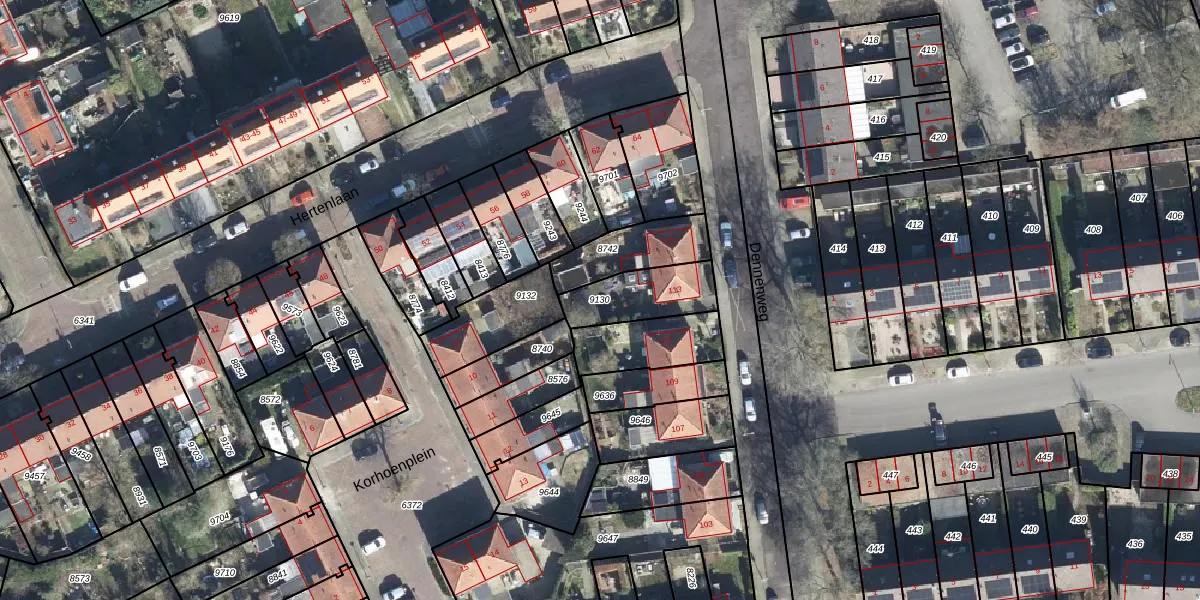 Gebruik de zoekbalk of klik op een perceel om informatie over het perceel te bekijken.