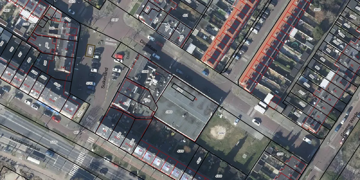 Gebruik de zoekbalk of klik op een perceel om informatie over het perceel te bekijken.