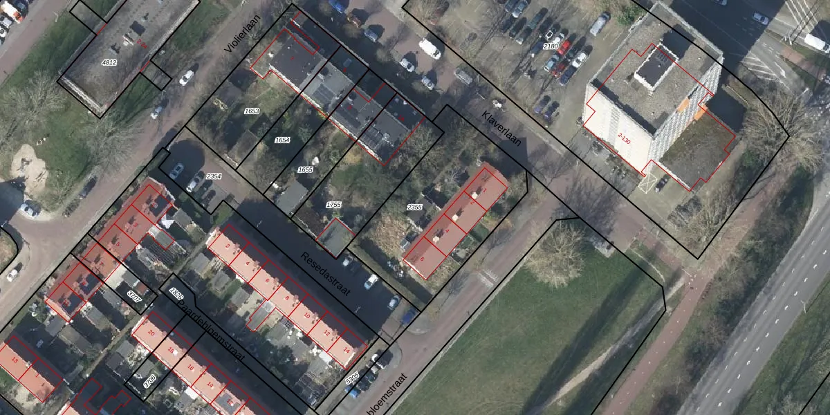 Gebruik de zoekbalk of klik op een perceel om informatie over het perceel te bekijken.