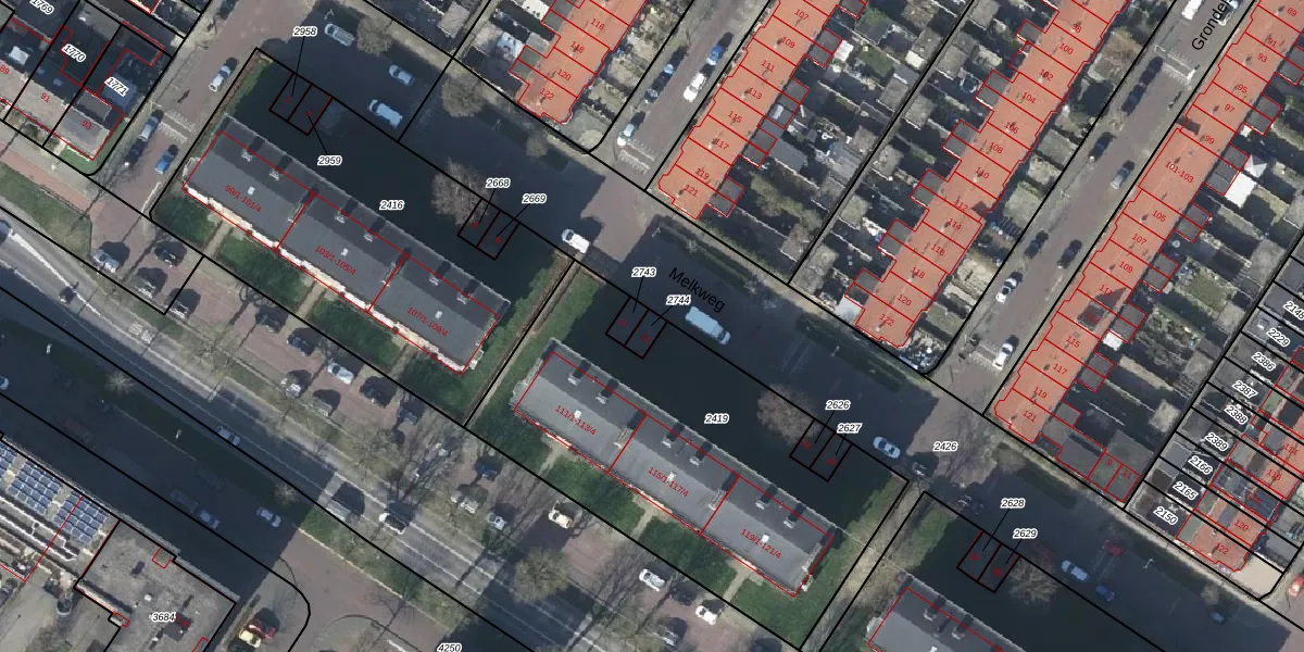 Gebruik de zoekbalk of klik op een perceel om informatie over het perceel te bekijken.