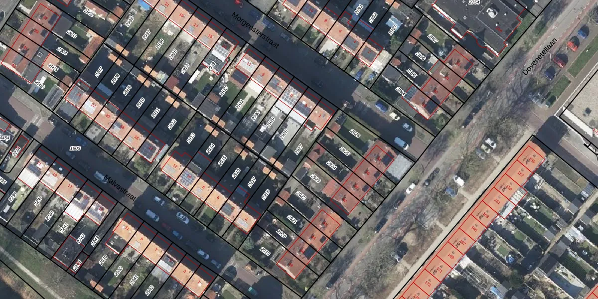 Gebruik de zoekbalk of klik op een perceel om informatie over het perceel te bekijken.