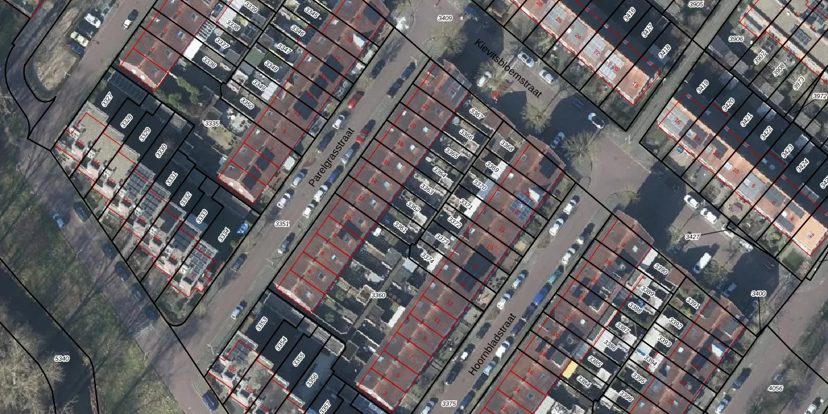 Gebruik de zoekbalk of klik op een perceel om informatie over het perceel te bekijken.
