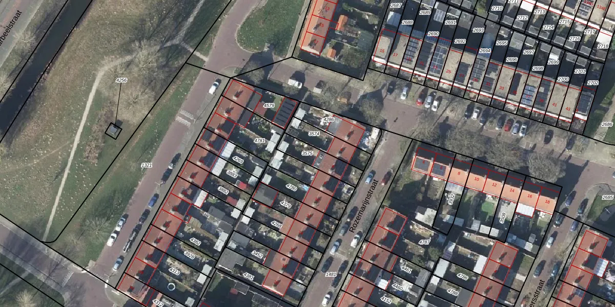 Gebruik de zoekbalk of klik op een perceel om informatie over het perceel te bekijken.