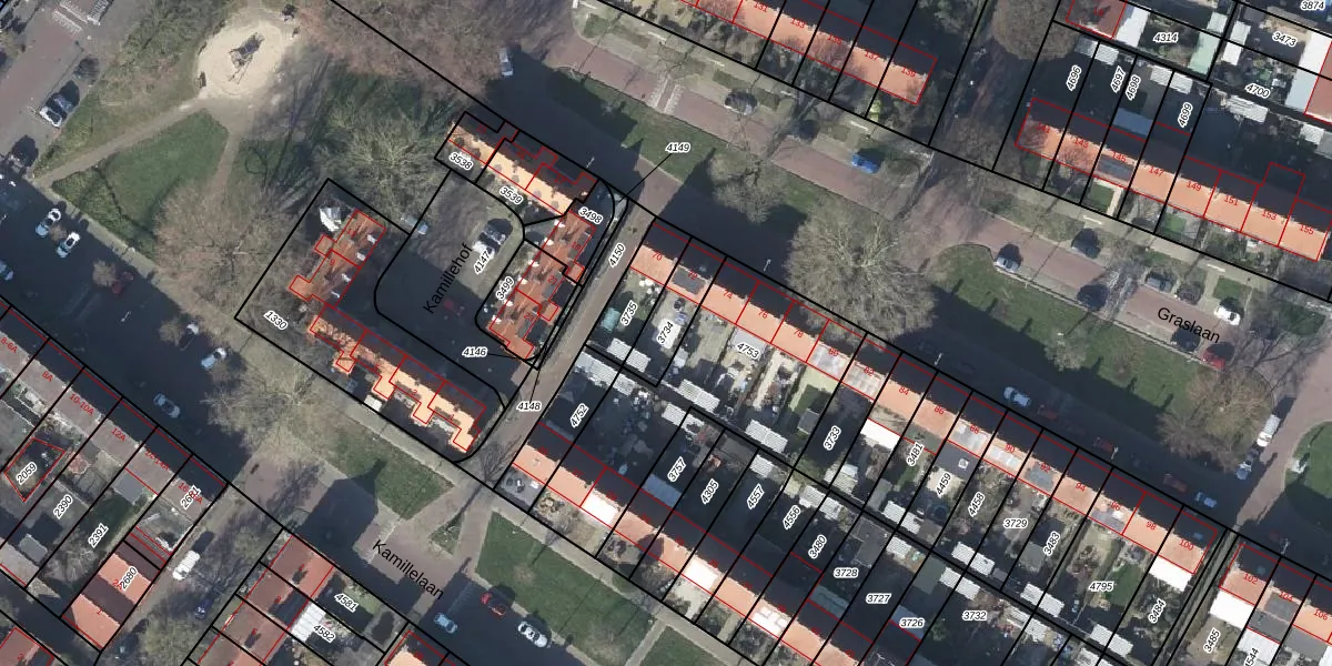 Gebruik de zoekbalk of klik op een perceel om informatie over het perceel te bekijken.