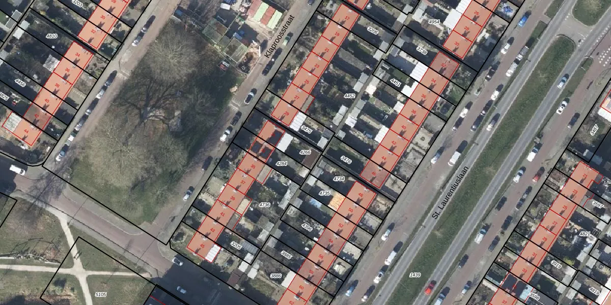 Gebruik de zoekbalk of klik op een perceel om informatie over het perceel te bekijken.