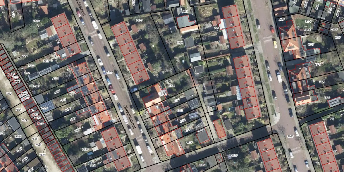 Gebruik de zoekbalk of klik op een perceel om informatie over het perceel te bekijken.