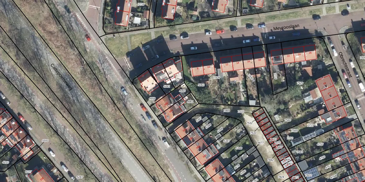 Gebruik de zoekbalk of klik op een perceel om informatie over het perceel te bekijken.