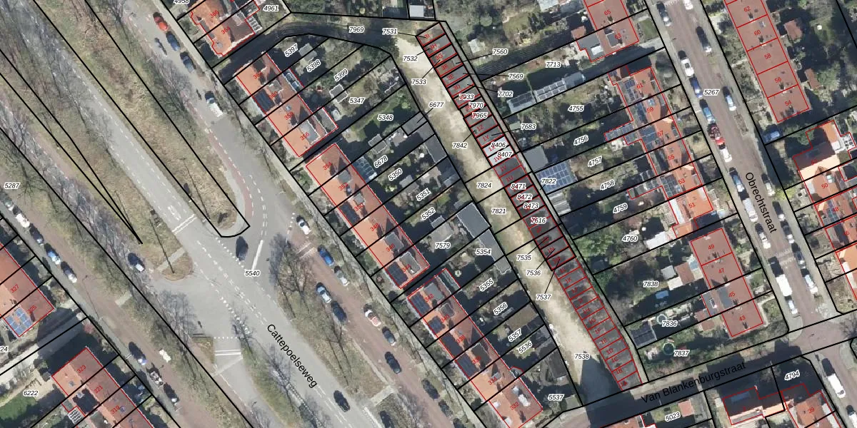 Gebruik de zoekbalk of klik op een perceel om informatie over het perceel te bekijken.