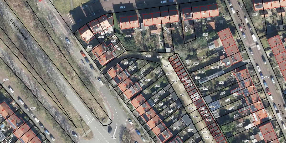 Gebruik de zoekbalk of klik op een perceel om informatie over het perceel te bekijken.