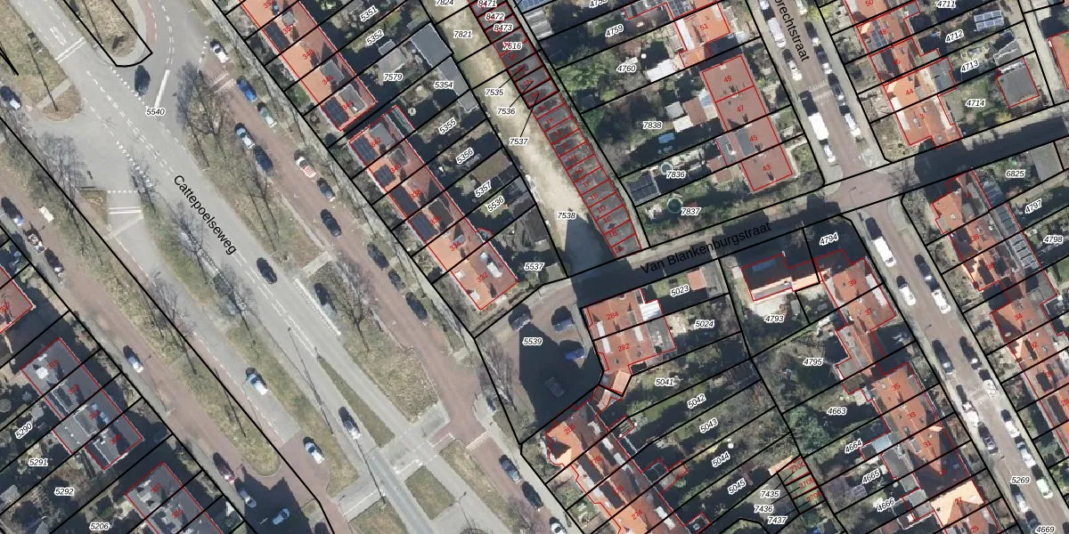 Gebruik de zoekbalk of klik op een perceel om informatie over het perceel te bekijken.