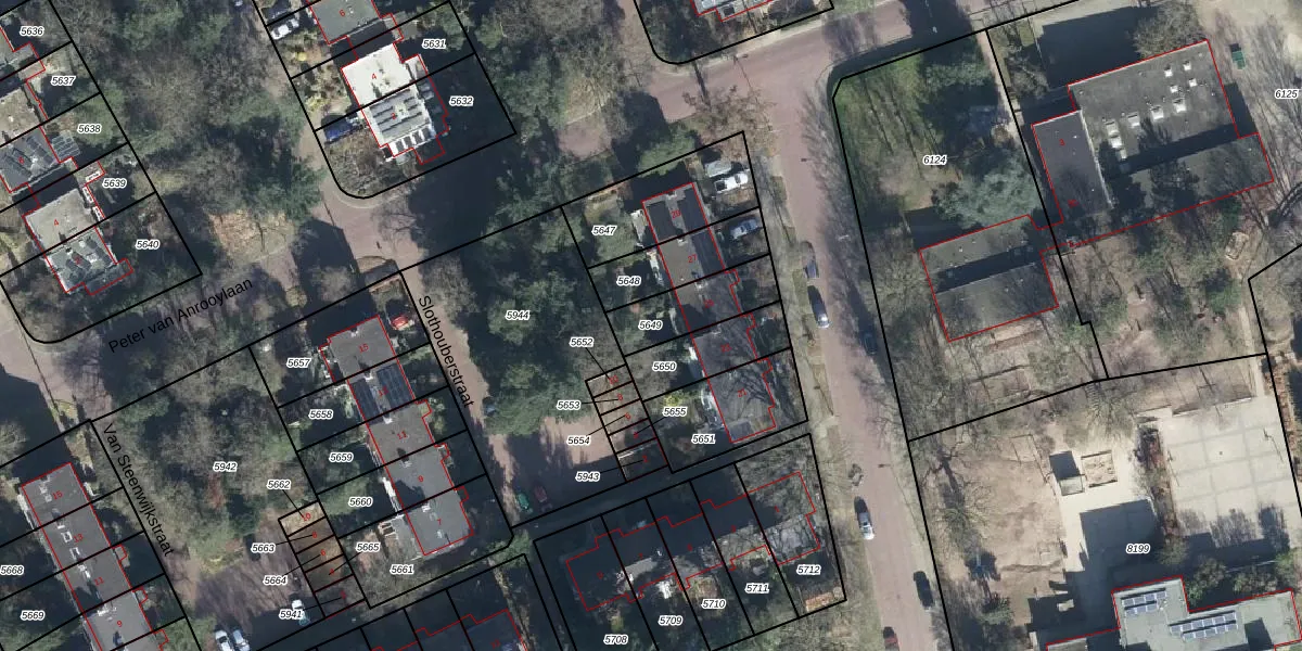 Gebruik de zoekbalk of klik op een perceel om informatie over het perceel te bekijken.